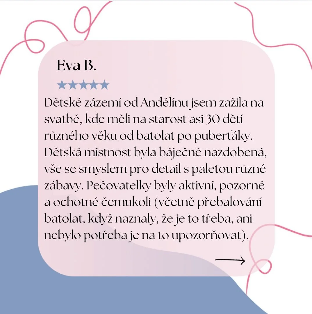 Připravíme zábavné prostředí pro děti na svatbě, narozeninovou oslavu, nebo dětský koutek na rodinné či firemní akci.